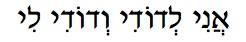 Môj milý je môj a ja som jeho, on, ktorý pasie medzi ľaliami. Pies 2, 16 (Ani l’Dodi v’Dodi li je transliterácia hebrejského Môj milý je môj a ja som jeho; pieseň vznikla na misii mladých v Rumunsku)